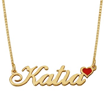 Naamketting met rood hart -18k verguld