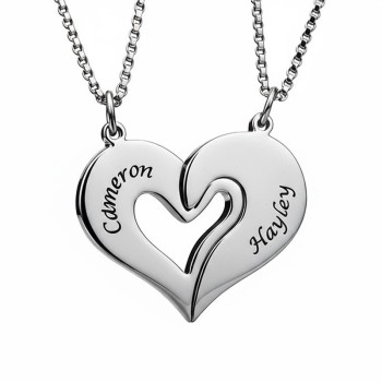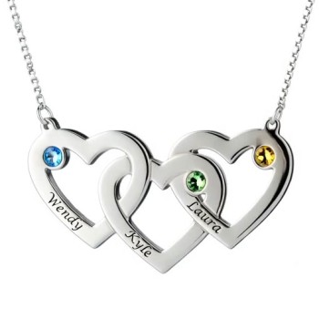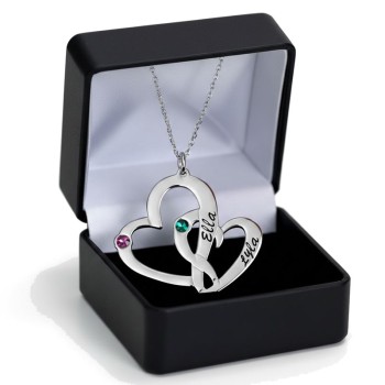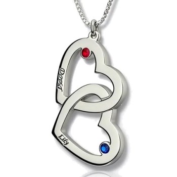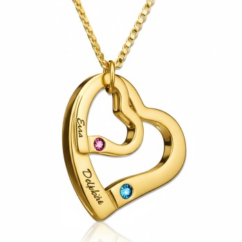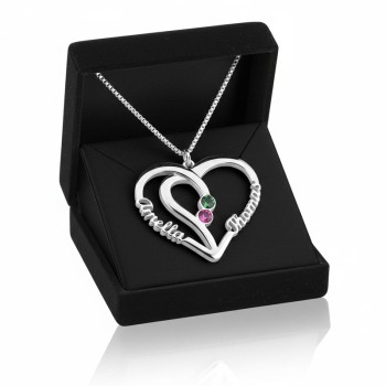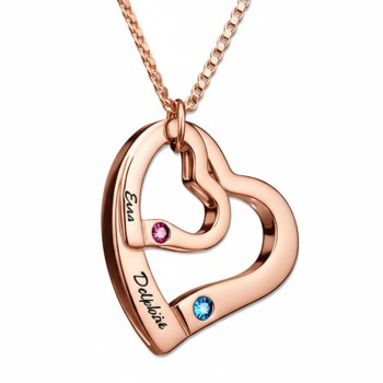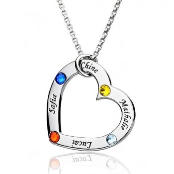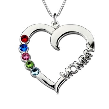 Hart mama ketting met gegraveerde namen en geboortestenen in zilver