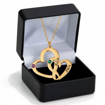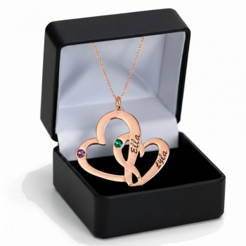 Hart mama ketting met gegraveerde namen en geboortestenen in zilver